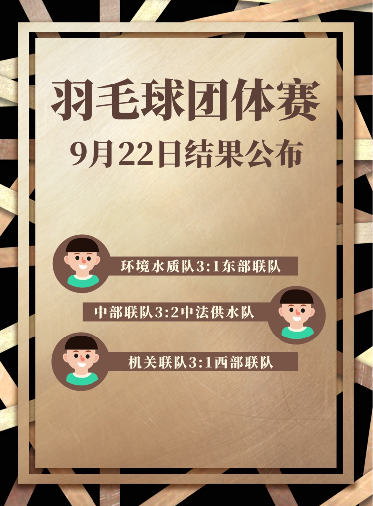隨后,羽毛球團體賽正式開(kāi)始,本輪參加比賽的隊伍有東部聯(lián)隊、環(huán)境水質(zhì)隊、中法供水隊、中部聯(lián)隊、機關(guān)聯(lián)隊及西部聯(lián)隊。