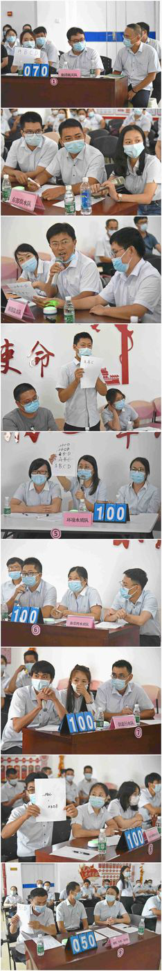 本次活動(dòng)共有9支隊伍參賽,分別是:集團機關(guān)參賽隊,東部供水公司參賽隊,西部供水公司參賽隊,二次供水與物業(yè)公司聯(lián)合參賽隊,環(huán)境水質(zhì)凈化公司參賽隊,海棠灣水質(zhì)凈化公司參賽隊,創(chuàng )意新城污水處理公司參賽隊,管網(wǎng)公司、新能源公司聯(lián)合參賽隊,建筑公司、生態(tài)公司、設計院聯(lián)合參賽隊。黨委委員、人力資源總監陳濤做賽前動(dòng)員講話(huà)?;顒?dòng)由工會(huì )副主席陳小柳主持,由安全監督部經(jīng)理葉闖、運營(yíng)管理部副經(jīng)理王玲、總工辦副主任廖光亮三名高級工程師擔任評委。