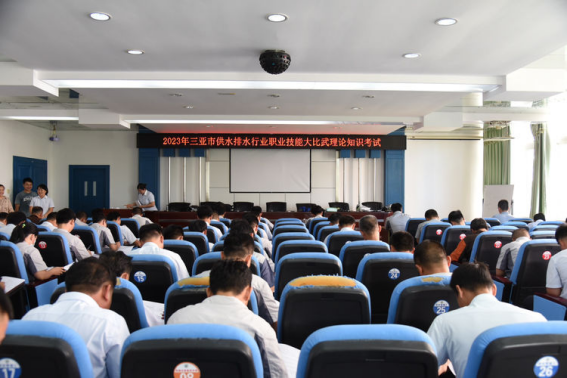 為了深入貫徹落實(shí)人才強國戰略,激勵三亞供排水行業(yè)廣大職工立足崗位練兵、立足崗位成才,為打贏(yíng)“六水共治”攻堅戰奠定堅實(shí)的人才基礎,今天下午,2023年三亞市供排水職業(yè)技能大比武活動(dòng)理論考試在環(huán)投集團紅沙水質(zhì)凈化廠(chǎng)開(kāi)考,來(lái)自全市12支代表隊的73名選手參加此次理論考試。集團黨委書(shū)記、董事長(cháng)張秀標,黨委委員、紀委書(shū)記吳淑清到考試現場(chǎng)指導考試工作。