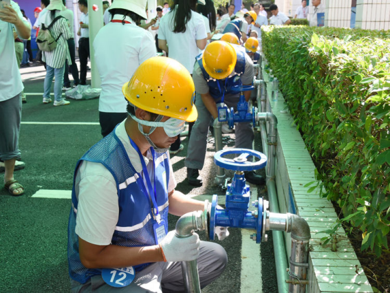 開(kāi)幕式后,精彩紛呈的技能實(shí)操比拼正式開(kāi)始,供水管道工、城鎮污水處理工、排水化驗員、供排水設備技術(shù)員及單人徒手心肺復蘇五個(gè)項目的比拼同步進(jìn)行。