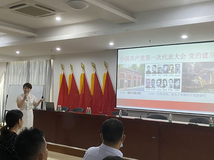 隨后,章梁為全體與會(huì )人員上了題為《初心不改 身先士卒——黨的浴血奮斗史》主題黨課。她從馬克思主義的形成與發(fā)展切入,為大家生動(dòng)形象地講述了中國共產(chǎn)黨從1921年成立一直到1949年中華人民共和國成立所經(jīng)歷的崢嶸歲月,勉勵各黨員及入黨積極分子要牢記“靡不有初、鮮克有終,懷揣夢(mèng)想、砥礪前行,不忘初心、牢記使命”,繼續深入學(xué)習貫徹新時(shí)代中國特色社會(huì )主義思想,錘煉忠誠干凈擔當的政治品格,團結帶領(lǐng)全國各族人民為實(shí)現偉大夢(mèng)想共同奮斗。最后,全體與會(huì )人員共同起立高唱《沒(méi)有共產(chǎn)黨就沒(méi)有新中國》,慷慨激昂的歌聲為黨課畫(huà)上圓滿(mǎn)句號。