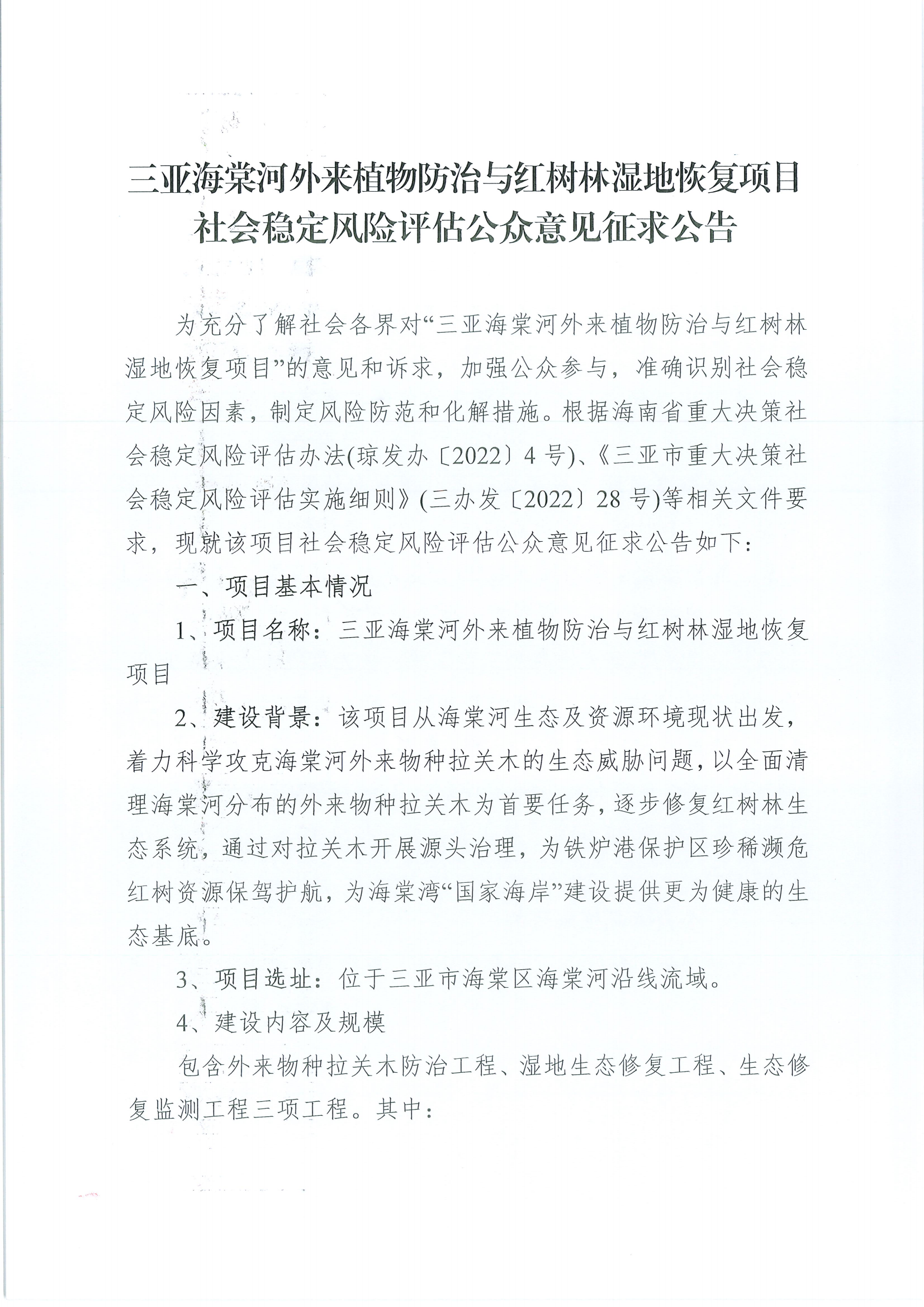 海棠河外來(lái)植物防治與紅樹(shù)林濕地恢復項目公眾意見(jiàn)征求公示公告