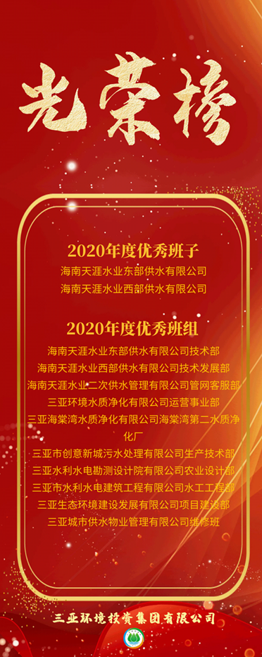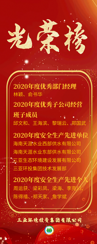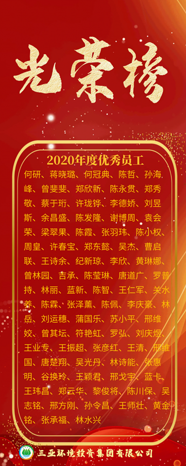 公司取得的優(yōu)異成績(jì),離不開(kāi)我們全體環(huán)投人的共同努力,是我們全司上下群策群力,勠力同心,奮楫篤行的成果。在我們環(huán)投人的隊伍中,涌現出了一大批管理科學(xué)、敢于創(chuàng )新的先進(jìn)集體和盡職盡責、勇于奉獻的先進(jìn)分子。為了鼓勵先進(jìn),樹(shù)立典型,激發(fā)全體職工干部的奮斗熱情,公司決定對2020年度涌現出的先進(jìn)集體和先進(jìn)個(gè)人予以嘉獎!