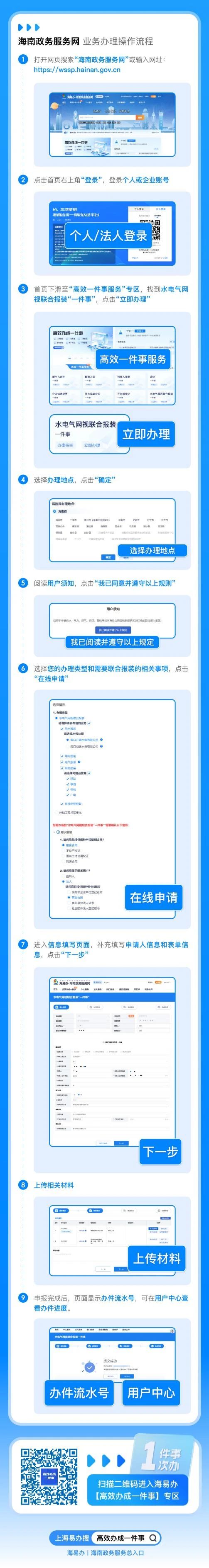 一圖讀懂海南水電氣網(wǎng)視聯(lián)合報裝“一件事”辦理指南