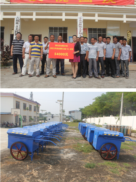 為響應市委市政府號召,深入開(kāi)展“美麗鄉村”環(huán)境衛生整治活動(dòng),公司向吉陽(yáng)鎮大茅村捐贈一批環(huán)衛設備。