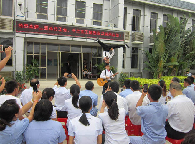 為豐富基層職工文化生活,滿(mǎn)足職工群眾的精神文化需求,2014年12月2日下午,三亞市總工會(huì )邀請中華全國總工會(huì )文工團來(lái)到西部供水公司,進(jìn)行“工會(huì )與職工心連心”送文藝下基層慰問(wèn)演出活動(dòng),此次慰問(wèn)演出由全總文工團黨委書(shū)記張景義和團長(cháng)張叢笑帶隊,眾多國家一級演員參與演出。各位藝術(shù)家克服氣候炎熱、條件簡(jiǎn)陋等諸多困難,為西部供水公司50多名基層一線(xiàn)職工獻上了一場(chǎng)場(chǎng)精彩的文藝演出。