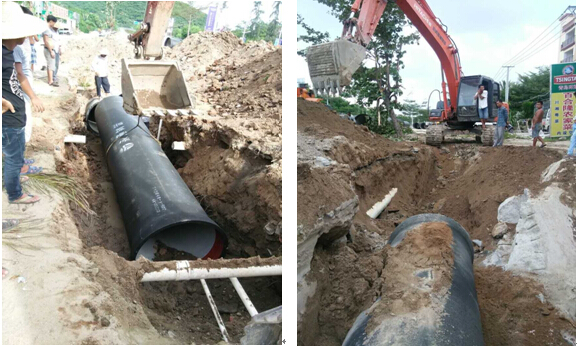 天涯區完成愛(ài)心大世界、黑土村、布甫村、紅塘村、塔嶺村等區域部分管道安裝,長(cháng)度1008m(其中安裝球墨鑄鐵管966m,鋼管42m),鋼管進(jìn)場(chǎng)420m。