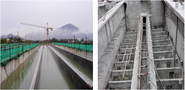 ★截至10月14日, V型濾池:①基礎工程已全部完成, ②混凝土澆筑1887m3,完成率50.13%,③完成鋼筋綁扎安裝322.63t,完成率89.37%,④完成DN1200出水鋼管安裝55m;配水井:①完成基坑土方開(kāi)挖300m3,②完成砼澆筑87m3,完成率58.39%,③完成鋼筋綁扎安裝12t,完成率80%;設備安裝:①完成清水池6臺DN800蝶閥安裝,②完成折板絮凝池排泥管安裝20根,完成率50%。