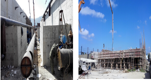 ★截至10月28日, V型濾池:①基礎工程已全部完成, ②混凝土澆筑2622m3,完成率69.66%,③完成池體鋼筋綁扎安裝361t,完成率100%,④完成DN1200出水鋼管安裝55m,DN600出水鋼管安裝40m,DN350出水鋼管安裝50m;配水井:①基礎工程已全部完成,②完成砼澆筑87m3,完成率58.39%,③完成鋼筋綁扎安裝15t,完成率100%;加藥間儲藥池: ①完成基坑土方開(kāi)挖180m3,完成率100%,②混凝土墊層澆筑135m3,完成率45%,③完成鋼筋綁扎安裝12t,完成率57.14%;設備安裝:①完成清水池6臺DN800蝶閥安裝,②完成折板絮凝池排泥管安裝40根,完成率100%,③完成濾池6臺DN500氣動(dòng)閥門(mén)安裝,完成率50%,④完成濾池人孔盲板安裝12塊,完成率50%。