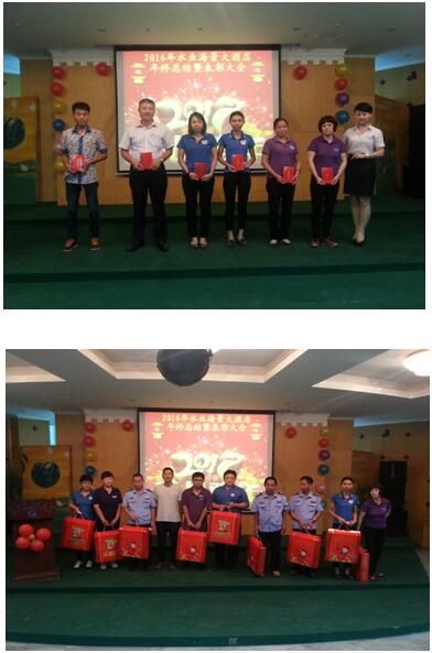年會(huì )上,酒店章梁總經(jīng)理做了2016年工作總結及2017年工作部署,分析了2016年及2017年的旅游市場(chǎng)形勢,并指出了各部門(mén)工作中的不足,會(huì )上表彰了各部門(mén)工作突出的員工并頒發(fā)了年度、季度優(yōu)秀員工的證書(shū)及生日員工賀卡。