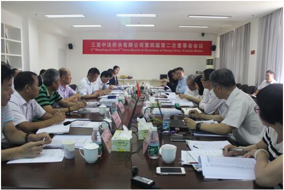 2017年5月16日上午,袁文革董事長(cháng)在海南天涯水業(yè)(集團)公司6樓會(huì )議室主持召開(kāi)了三亞中法供水有限公司第四屆第二次董事會(huì )會(huì )議,公司中外雙方董事、經(jīng)營(yíng)管理層及中外雙方股東相關(guān)人員參加了本次會(huì )議。