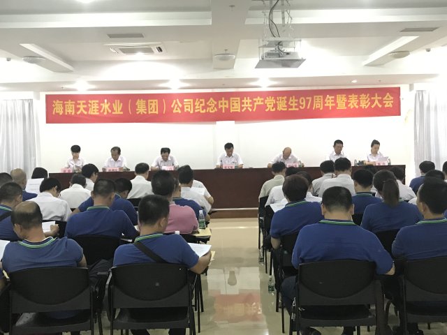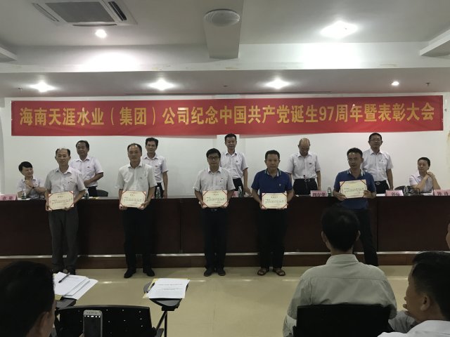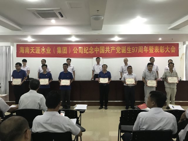 為紀念中國共產(chǎn)黨建黨97周年,貫徹落實(shí)市國資委黨委的工作部署,大力宣傳我司各級黨組和廣大黨員在生產(chǎn)經(jīng)營(yíng)和“兩學(xué)一做”學(xué)習教育中涌現出來(lái)的先進(jìn)典型, 6月29日下午,海南天涯水業(yè)(集團)公司在集團公司八樓會(huì )議室召開(kāi)紀念建黨97周年暨七一表彰大會(huì )。大會(huì )由黨委副書(shū)記周存榮主持,公司黨委委員、黨總支委員、黨支部委員、全體優(yōu)秀共產(chǎn)黨員、優(yōu)秀黨務(wù)工作者、黨員代表共85人參加了會(huì )議。