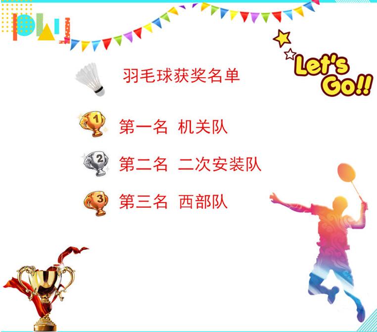 賽程圓滿(mǎn)結束,通過(guò)比賽增進(jìn)職工友誼,增加團隊協(xié)助,弘揚企業(yè)拼搏進(jìn)取精神,展現了企業(yè)職工積極樂(lè )觀(guān)生活態(tài)度,促進(jìn)企業(yè)持續健康發(fā)展的活力。