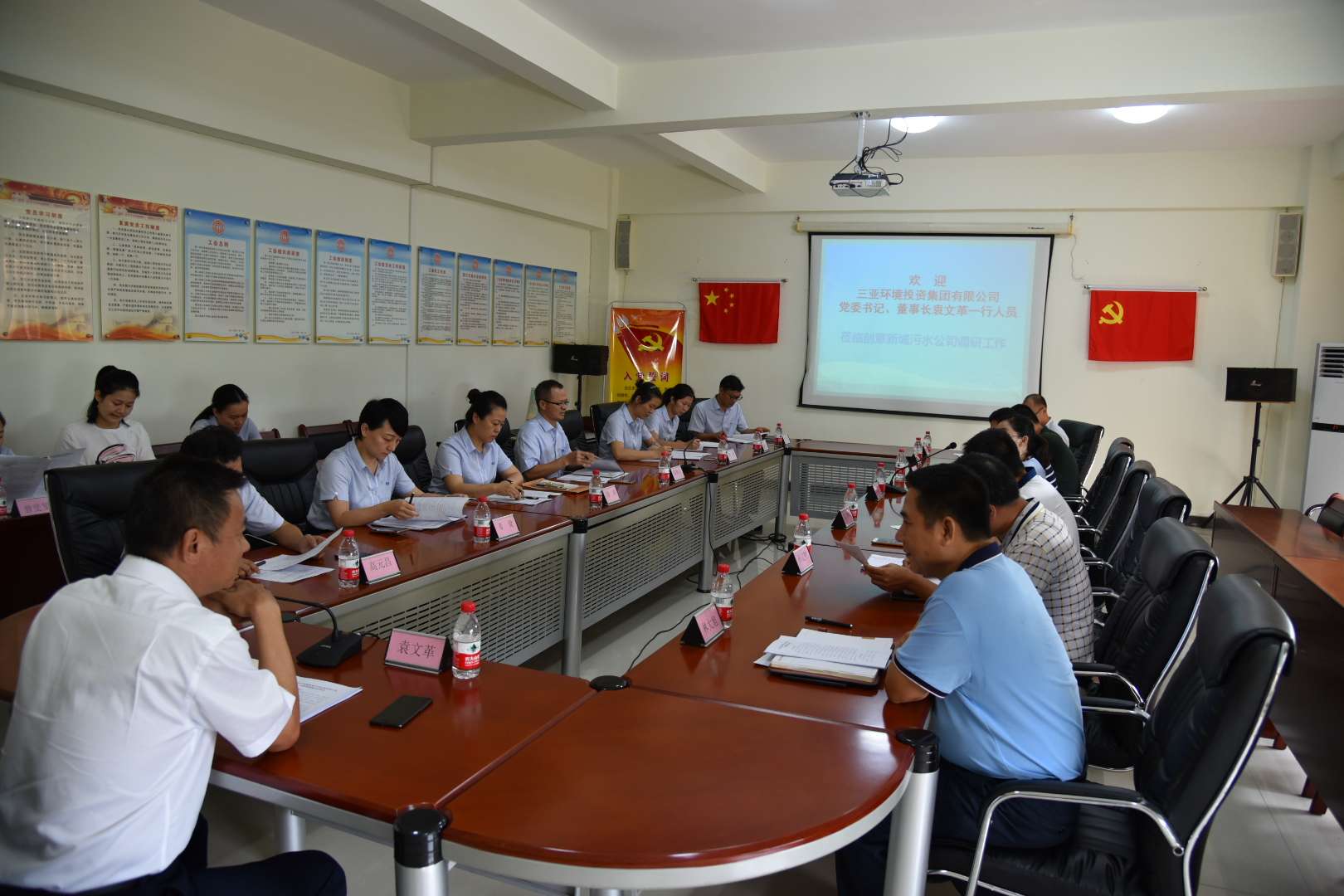 為貫徹落實(shí)三亞市委市政府全面深化國資國企改革的戰略部署,根據謝慶林副市長(cháng)的指示精神及市國資委的工作安排,繼續推進(jìn)三亞環(huán)投集團組建工作,2019年7月10日下午,黨委書(shū)記、董事長(cháng)袁文革率領(lǐng)副總經(jīng)理高元昌、黨委委員章梁、陳濤和集團各職能部門(mén)負責人到三亞市創(chuàng )意新城污水處理有限公司(以下簡(jiǎn)稱(chēng)“創(chuàng )意新城污水公司”)調研座談。