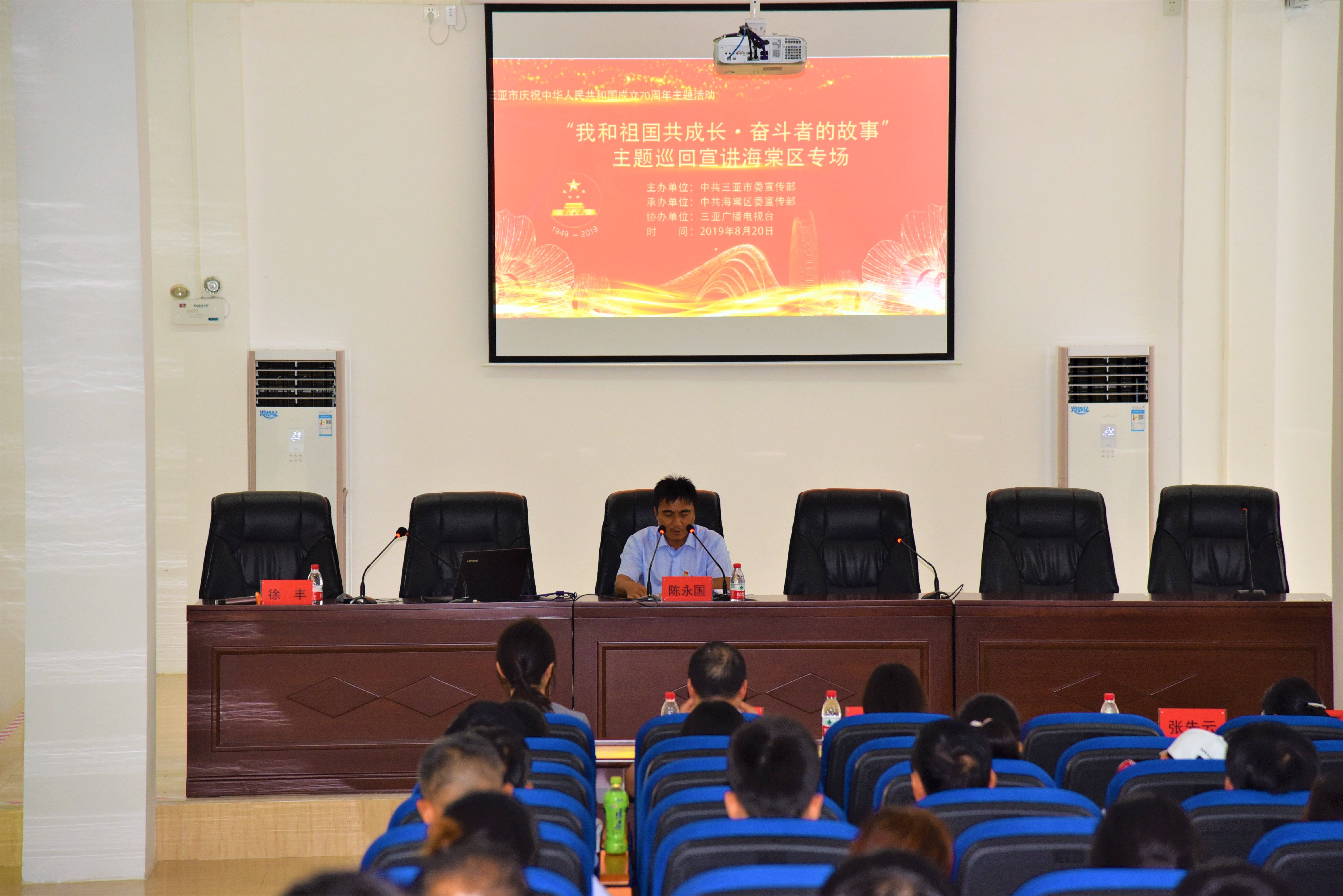 為了做好慶祝新中國成立70周年活動(dòng),根據《三亞市慶祝中華人民共和國成立70周年活動(dòng)實(shí)施方案》,三亞市委宣傳部組織開(kāi)展“我和祖國共成長(cháng)•奮斗者的故事”主題巡回宣講。8月20日下午16時(shí),巡回宣講海棠灣專(zhuān)場(chǎng)在海棠區政府報告廳舉行,我司“潛水哥”——陳永國同志榮幸作為宣講團成員之一,講述其本人的先進(jìn)事跡。