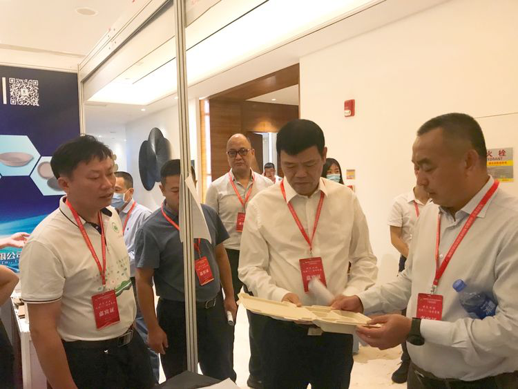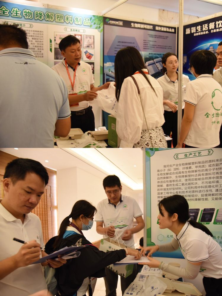 在供需對接專(zhuān)題活動(dòng)現場(chǎng),我司所在展位展示了十二種不同規格的全生物降解塑料袋及多種樣式的各類(lèi)餐具,吸引了諸多企事業(yè)單位及使用單位代表前來(lái)詢(xún)問(wèn)??偨?jīng)理張秀標、總會(huì )計師孫建華在展品前為前來(lái)詢(xún)問(wèn)產(chǎn)品的客戶(hù)發(fā)放我司宣傳單及宣傳冊、講解“禁塑”政策對海南的環(huán)保意義,推廣我司全生物降解塑料制品。