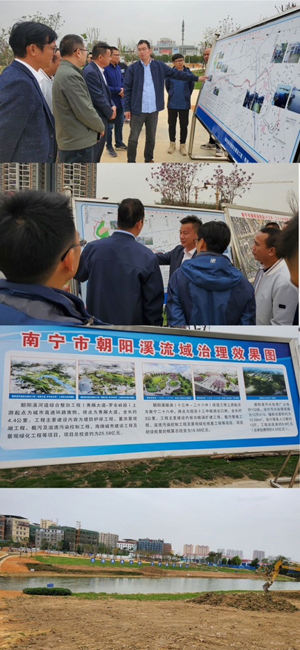 22日下午,考察組考察了南寧朝陽(yáng)溪河道綜合整治工程建設,該工程建設主要圍繞堤防護岸、清淤保障、蓄洪景觀(guān)湖、截污及溢流污染控制、海綿城市建設、景觀(guān)綠化等方面全方位治理,總投資25.58億元。