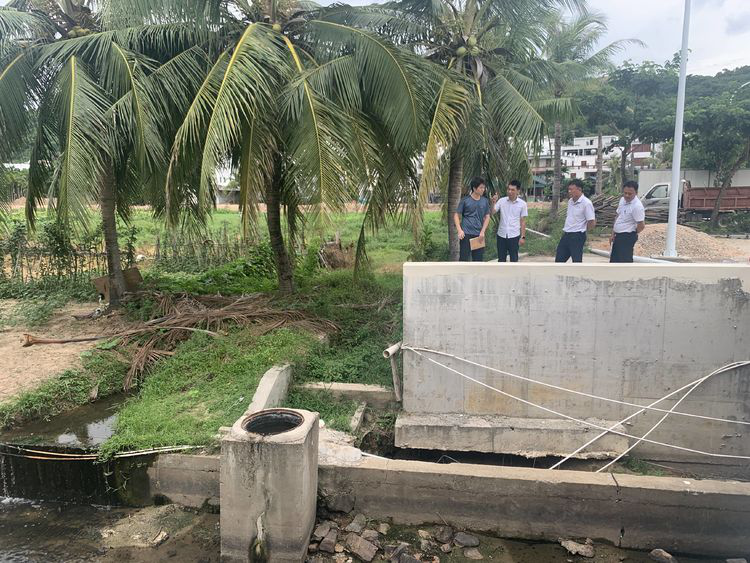 在亞龍灣六盤(pán)村附近,張秀標董事長(cháng)一路步行查看排污口向亞龍溪排污情況,詳細了解附近區域現有的污水處理設施和排污管網(wǎng)情況,明確了問(wèn)題產(chǎn)生的原因主要是博后糖豐及六盤(pán)片區現有的市政污水設施不完善并存在破損,已實(shí)施的污水整治項目無(wú)法完全收集片區污水等。為解決生活污水直排亞龍溪的問(wèn)題,環(huán)投集團將新建一座規模1500噸/天的污水提升泵站,并新建約1100m的DN500球墨鑄鐵管和1034m的DN300污水壓力管接至亞龍灣現狀市政污水管。