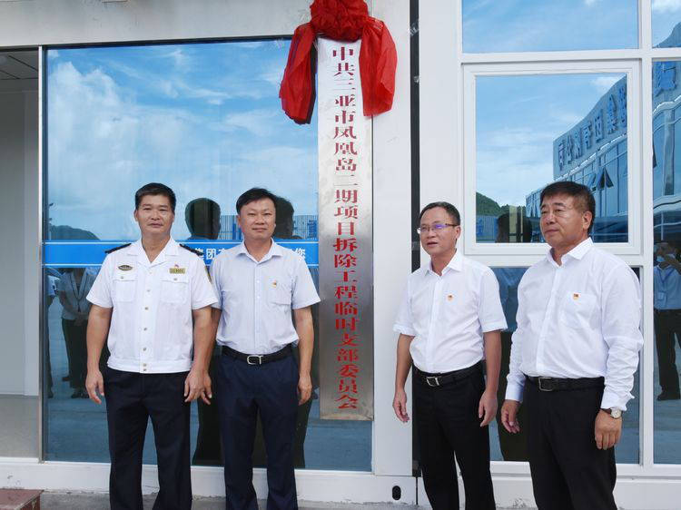 今天上午,中共三亞市鳳凰島二期項目拆除工程臨時(shí)支部委員會(huì )揭牌儀式在項目拆除工程指揮部舉行。天涯區委書(shū)記黃興武、三亞環(huán)投集團董事長(cháng)張秀標、三亞海事局局長(cháng)翁建才、中建筑港集團有限公司副總經(jīng)理連寶玉共同為臨時(shí)黨支部揭牌。