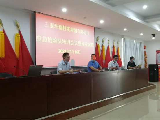 三亞環(huán)投集團應急搶險隊由集團下屬的水利水電建筑公司、東部供水公司、西部供水公司、環(huán)境水質(zhì)凈化公司、海棠灣水質(zhì)凈化公司和創(chuàng )意新城污水處理公司等6個(gè)子司抽調精干專(zhuān)業(yè)人員組成,共有成員35名,承擔環(huán)投集團部署的搶修、搶險和救援等應急處理任務(wù)。為加強各子司隊員間的協(xié)調與配合,檢驗隊伍根據應急預案應對突發(fā)爆管事故的應急處置能力,于9月16日上午,集團安委辦和搶險隊領(lǐng)導小組在集團八樓會(huì )議室組織開(kāi)展了培訓會(huì )議暨應急搶險桌面演練。