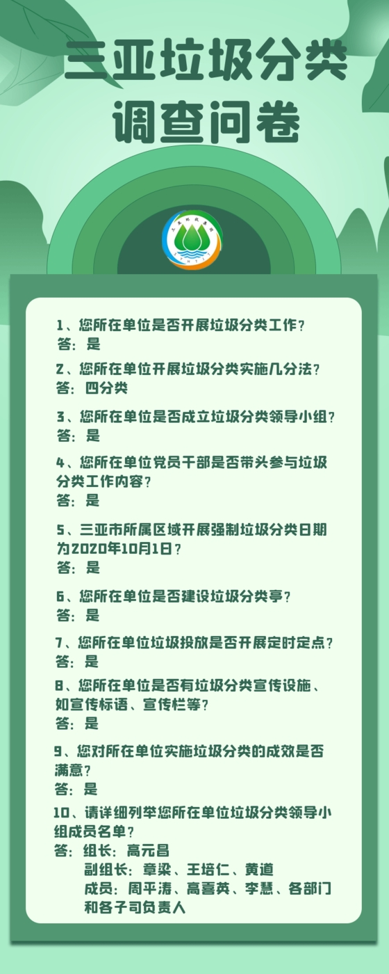 垃圾分類(lèi)是當前三亞正在全力推進(jìn)的一項重要工作,從市民群眾到各企事業(yè)單位,社會(huì )各界都在踴躍學(xué)習推廣垃圾分類(lèi)。作為三亞環(huán)境產(chǎn)業(yè)的主力軍,環(huán)投集團有義務(wù)、有責任全員帶頭做好這項工作。目前環(huán)投集團機關(guān)及各子公司的分類(lèi)垃圾桶、垃圾亭都已經(jīng)配置到位,但在檢查中發(fā)現,垃圾精準分類(lèi)投放工作還普遍沒(méi)有落實(shí)到位。在此,我們向所有環(huán)投人發(fā)出倡議,請您認真學(xué)習垃圾分類(lèi)知識,積極踐行精準投放,共同傳揚文明、綠色新風(fēng)。