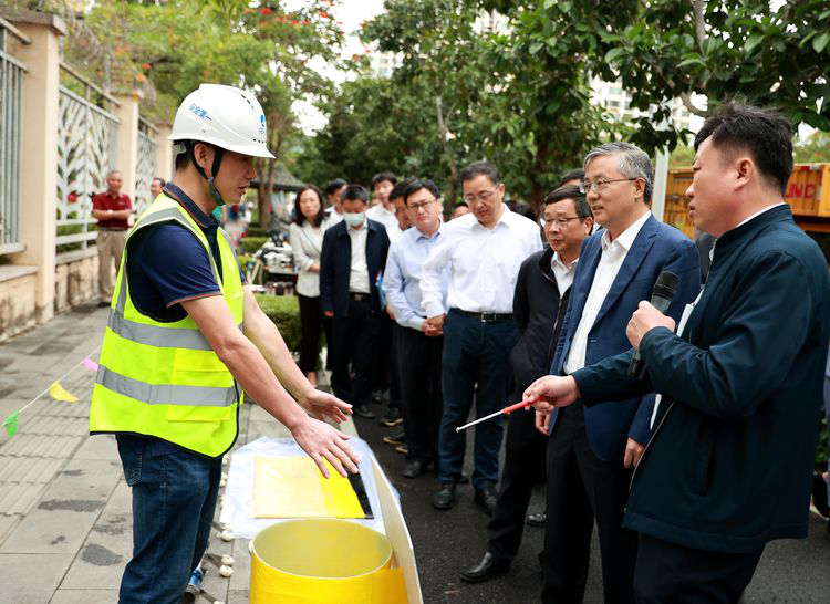 2月14日,三亞召開(kāi)“六水共治”現場(chǎng)推進(jìn)會(huì ),省委常委、市委書(shū)記周紅波,市委副書(shū)記、市長(cháng)包洪文,市人大常委會(huì )主任劉耿,市政協(xié)主席王利生、市委副書(shū)記尚林等市領(lǐng)導和相關(guān)部門(mén)負責人在棕櫚路觀(guān)摩點(diǎn)聽(tīng)取了三亞環(huán)投集團有關(guān)水環(huán)境綜合治理工作的匯報,并現場(chǎng)觀(guān)摩了排水管網(wǎng)排查修復技術(shù)。