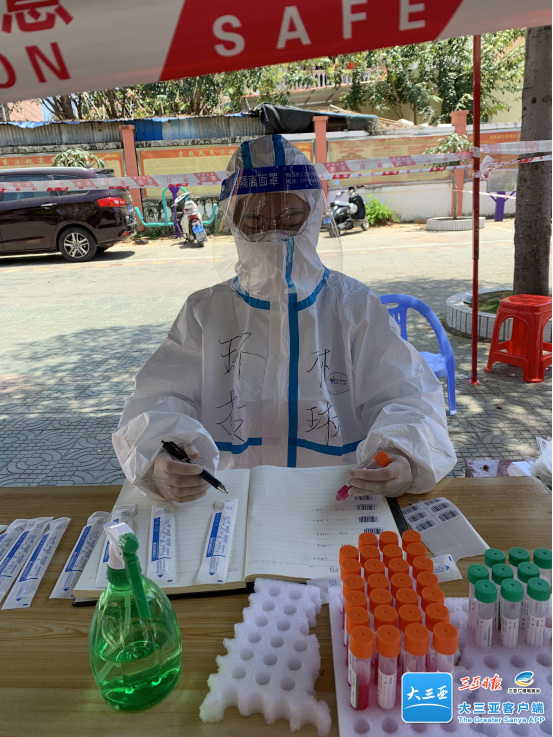 今年32歲的謝學(xué)慧是三亞環(huán)投集團的一名工作人員。在集團工作群中收到號召黨員干部職工下沉一線(xiàn),踴躍參與疫情防控志愿服務(wù)的消息后,謝學(xué)慧第一時(shí)間報了名。4月2日至今,每天早晨五六點(diǎn)開(kāi)始,謝學(xué)慧一直在核酸檢測點(diǎn)位連軸轉,揮灑著(zhù)青春的汗水。