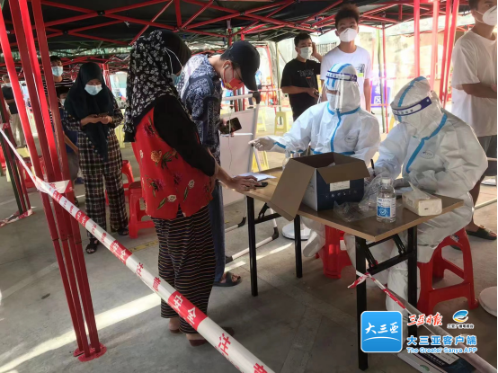 在海潤路檢測點(diǎn)服務(wù)的鄭康作為流動(dòng)人員到采樣各個(gè)環(huán)節替崗,一天下來(lái)基本沒(méi)有時(shí)間坐下來(lái)休息,碰到不會(huì )操作智能手機的居民,他總是耐心地為大家講解示范,有時(shí)遇到一些聽(tīng)不懂普通話(huà)的老人,他就用海南話(huà)耐心講解許多遍,直到老人們順利做完核酸他才放心離開(kāi)……