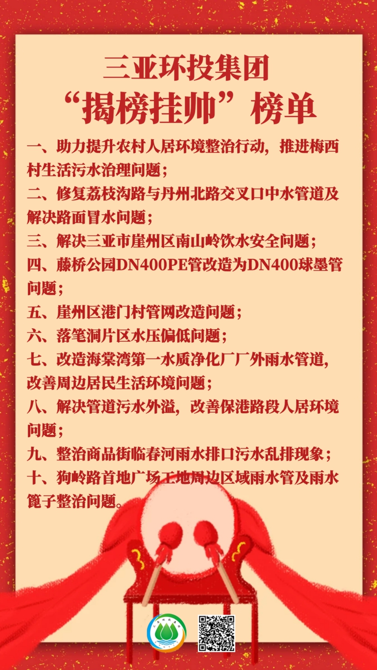7月13日,三亞環(huán)投集團黨委組織召開(kāi)專(zhuān)題會(huì )議,總結安排部署“能力提升建設年”深化拓展“查堵點(diǎn)、破難題、促發(fā)展”“制度執行年”和“優(yōu)化營(yíng)商環(huán)境”四項專(zhuān)題活動(dòng),并公布“揭榜掛帥”十項民生任務(wù)榜單。公司黨委班子成員、經(jīng)營(yíng)班子成員、各黨支部書(shū)記、各部門(mén)和子公司主要負責人參加會(huì )議。