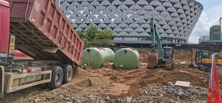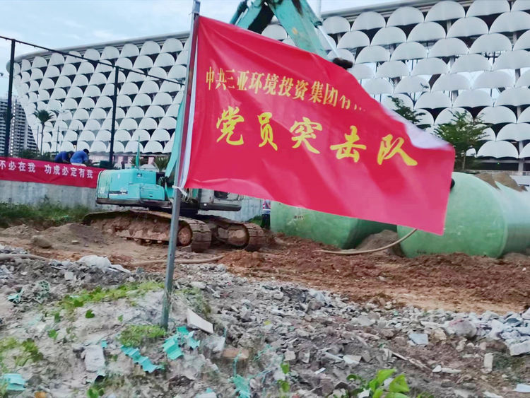 8月10日,隨著(zhù)場(chǎng)地開(kāi)始平整,環(huán)投集團建設隊伍迅速進(jìn)入“戰斗”狀態(tài)。當天下午,黨委書(shū)記、董事長(cháng)張秀標同志親臨現場(chǎng)監督指導,要求參建人員提高站位,“快”字當頭,打起十二分精神,緊盯每一個(gè)細節不放松,不斷優(yōu)化建設方案,與各相關(guān)部門(mén)密切溝通,做好施工物資進(jìn)場(chǎng)和污水應急抽排等準備工作。8月11日,項目正式開(kāi)始施工,兩個(gè)消毒罐體從??谶B夜運抵三亞,僅用一天時(shí)間即完成了場(chǎng)地清表、罐體基坑開(kāi)挖和安罐等工作。