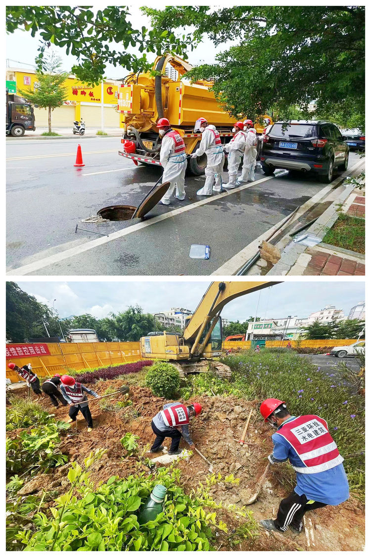 17日上午,第五方艙醫院強化消毒處理站正式開(kāi)始施工。張秀標董事長(cháng)來(lái)到施工現場(chǎng),為建設做進(jìn)一步動(dòng)員部署。下午,供水接駁點(diǎn)及供水管道開(kāi)挖。18日凌晨,消毒罐體連夜運送到場(chǎng),工作人員馬不停蹄開(kāi)始安裝。截至下午,已完成供水管道鋪設和六個(gè)消毒罐體安裝……施工期間又逢三亞發(fā)布暴雨橙色預警,面對地下錯綜復雜的管線(xiàn)環(huán)境,隊員們膽大心細,在不破壞原有管線(xiàn)的前提下,由機械開(kāi)挖改為人工開(kāi)挖,并盡力爭奪每一秒工期。