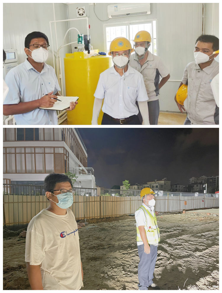 污水管網(wǎng)管理有限公司副總經(jīng)理黎經(jīng)范同志自接到負責第五方艙醫院配套污水強化消毒處理站指揮調度的緊急任務(wù)后,立刻調整狀態(tài)全身心投身到施工中。8月17日到達施工現場(chǎng)后,他按照集團領(lǐng)導的安排馬上部署落實(shí)材料、設備和人員,趕在正式開(kāi)工前抓緊時(shí)間組織工人預先開(kāi)挖平整場(chǎng)地,為正式進(jìn)場(chǎng)提供作業(yè)面。在工地通宵作業(yè)之后,臨近早晨他僅僅在車(chē)里睡了2個(gè)小時(shí)就又接著(zhù)進(jìn)入作戰狀態(tài),在施工現場(chǎng)不停穿梭走動(dòng),對內做好調度指揮,對外做好協(xié)調工作,確保有序作業(yè)。為了加快完成施工任務(wù),他全程緊盯施工進(jìn)度,工人不離開(kāi)他也不眠不休。