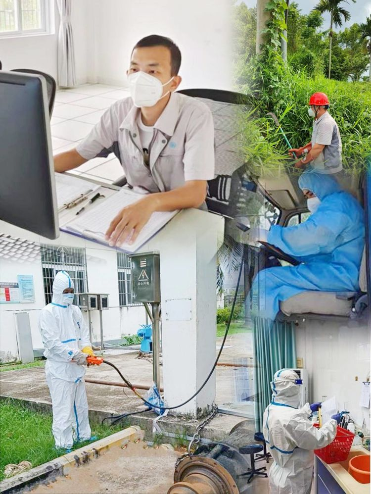 8月25日,今年第9號臺風(fēng)“馬鞍”給三亞市帶來(lái)強降雨的影響,當日創(chuàng )意廠(chǎng)和崖城廠(chǎng)在生產(chǎn)運行過(guò)程中分別出現液位異常。為了污水廠(chǎng)正常生產(chǎn)運行,創(chuàng )意廠(chǎng)負責人唐楚翔和崖城廠(chǎng)副廠(chǎng)長(cháng)張澤湖立即分別組織廠(chǎng)內堅守一線(xiàn)的員工孟春應、符毓龍、趙學(xué)以及莊港強等同志外出排查污水管網(wǎng)情況。他們不怕苦、不怕累,深夜穿上防護服,帶上手電筒、撬棍等工具,對廠(chǎng)外污水井一一進(jìn)行排查,梳理存在的問(wèn)題,同時(shí)做好防護消毒、數據收集整理、問(wèn)題分析等工作。有些人甚至半夜才拖著(zhù)疲憊的身軀回到廠(chǎng)內。在認真排查與分析后,創(chuàng )意廠(chǎng)和崖城廠(chǎng)分別根據情況調整生產(chǎn)力度或反饋至管網(wǎng)公司,保障了污水生產(chǎn)和管網(wǎng)快速恢復正常。