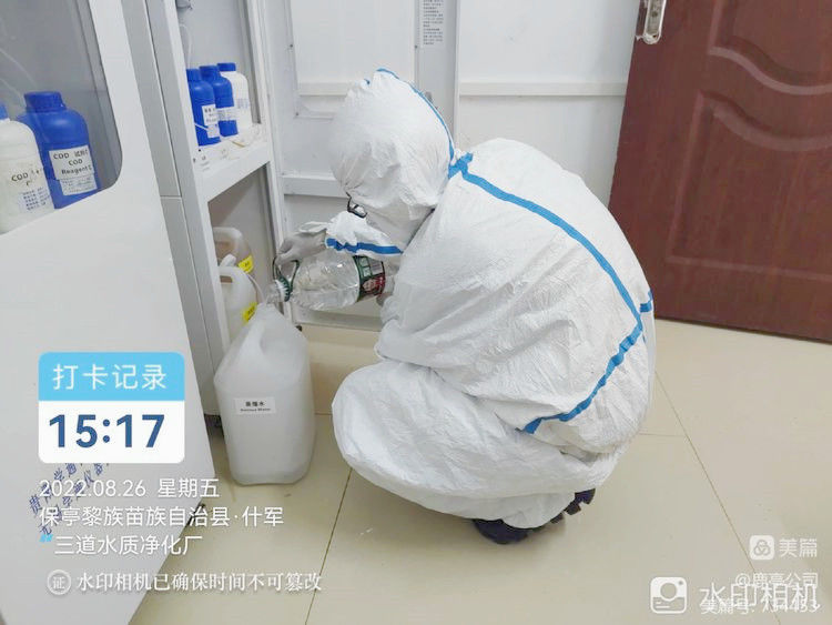同樣受到臺風(fēng)影響的還有鹿亭公司三道污水廠(chǎng),在巡查時(shí)管網(wǎng)5號泵井運行異常。三道廠(chǎng)負責人劉慶煜同志帶領(lǐng)值班人員梁海、楊建庭到現場(chǎng)排查、排除故障,使泵井運行很快恢復正常。26日下午,楊建庭在值班巡查時(shí)發(fā)現進(jìn)出水在線(xiàn)監測設備蒸餾水余量不足,部分設備廢液已滿(mǎn),因疫情防控原因第三方運維人員無(wú)法到達現場(chǎng),楊建庭立即穿戴好防護用品,補充進(jìn)出水在線(xiàn)監測設備蒸餾水,并分裝在線(xiàn)廢液暫存廠(chǎng)區危廢間。