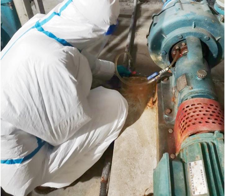 抗疫的關(guān)鍵時(shí)刻,面對污水處理量波動(dòng)、設備故障等問(wèn)題,水質(zhì)凈化公司新城廠(chǎng)的生產(chǎn)保衛者們嚴守污水處理一線(xiàn),為安全生產(chǎn)保駕護航。8月26日,中控值班員馮在友同志發(fā)現磁混凝池地下室水位已淹沒(méi)部分低處管道,他立即將問(wèn)題上報陳才杰副廠(chǎng)長(cháng)。陳才杰收訊后立刻率領(lǐng)現場(chǎng)值班員蒲國樂(lè )、運行操作員黎克良、機修技術(shù)員范才林和當天并未排班的現場(chǎng)人員劉真智一起趕往現場(chǎng)。細致勘查發(fā)現,部分冷卻管破損開(kāi)裂,且抽水泵浮球被雜物附著(zhù)未能自動(dòng)開(kāi)啟。此時(shí)積水已深達15公分,關(guān)鍵時(shí)刻,陳才杰與蒲國樂(lè )當機立斷,立即關(guān)停受損的進(jìn)水總閥,黎克良則搬運一臺備用抽水泵到現場(chǎng)抽水,劉真智取出備用冷卻管與蒲國樂(lè )、黎克良一同更換并及時(shí)恢復通水。修復好冷卻管后,范才林進(jìn)一步檢查所有電機線(xiàn)路是否存在泡水故障等運行問(wèn)題。正是大家統一行動(dòng)、迅速響應、精準判斷,積水問(wèn)題才得以迅速解決,杜絕了重大設備損毀事故的發(fā)生。
