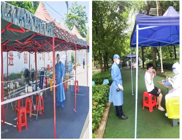 技術(shù)服務(wù)公司職工李傳振和邢豐積極報名核酸采樣專(zhuān)項志愿者,每天太陽(yáng)還未升起,他們便已經(jīng)做好各項工作,準備出發(fā)社區開(kāi)始核酸采樣。每天要采集近400人的樣本,由于不間斷地重復抬手放下的動(dòng)作,工作結束時(shí)他們的胳膊已經(jīng)酸痛難忍,脫下手套后的雙手也已泛白發(fā)皺。有時(shí)面對腿腳不便或是年紀較大的老人,還需上門(mén)核酸,核酸采樣結束后衣服已經(jīng)能擰出水來(lái),累到幾乎站著(zhù)就能入睡。但他們從未有過(guò)一句怨言,而是勤勤懇懇,充滿(mǎn)朝氣,為最后的攻堅階段默默奉獻自己的力量。