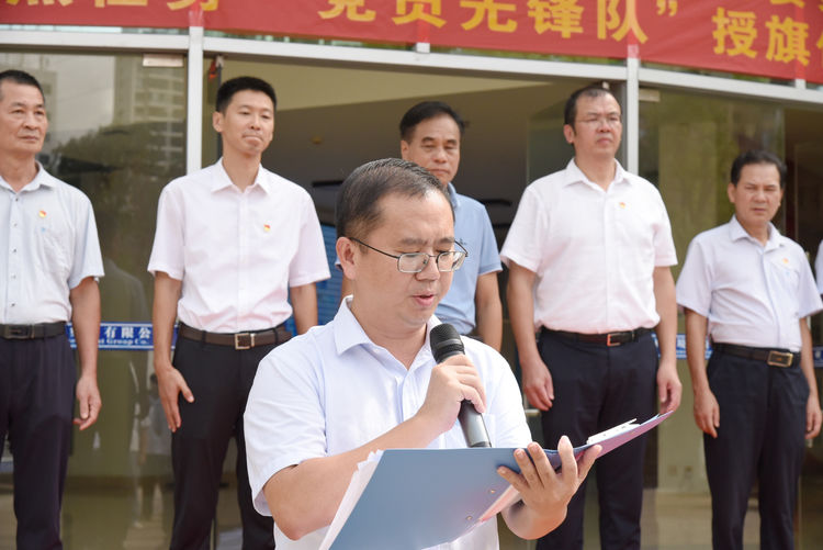 授旗儀式上,三亞環(huán)投集團黨委書(shū)記、董事長(cháng)禹成兵帶領(lǐng)黨員重溫入黨誓詞并作動(dòng)員講話(huà),黨委副書(shū)記曾山宣讀《中共三亞環(huán)境投資集團有限公司委員會(huì )關(guān)于在重點(diǎn)任務(wù)攻堅中成立黨員先鋒隊的決定》。市國資委黨委專(zhuān)職副書(shū)記陳朝江與集團黨委班子成員一同為九支黨員先鋒隊授旗。
