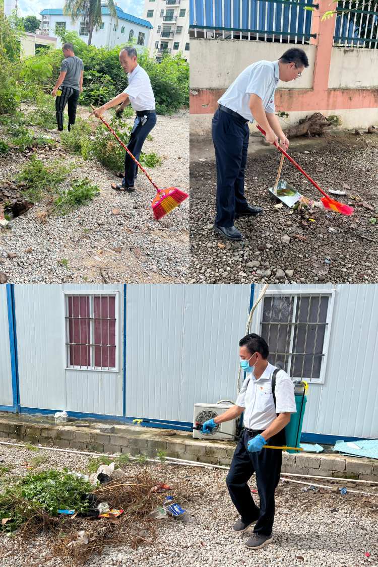 9月15日以來(lái),集團黨員干部以身作則,積極響應集團號召,組織廣大干部職工集結成登革熱防控志愿服務(wù)隊,每日下沉包點(diǎn)社區——回輝社區,協(xié)助社區居民開(kāi)展常態(tài)化登革熱防控工作。志愿者服務(wù)隊通過(guò)沿街清理社區街道內的衛生死角,從源頭上控制蚊蟲(chóng)的孳生和蔓延。同時(shí)在各居民生活區域開(kāi)展入戶(hù)排查,將易成為蚊蟲(chóng)繁衍溫床的積水、污水清理處置,防止水坑、污水溝成為蚊蟲(chóng)孳生地,有效降低蚊蟲(chóng)密度,切斷登革熱傳播途徑。