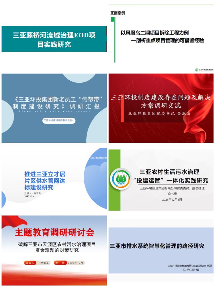 會(huì )上,集團班子領(lǐng)導圍繞各自調研選題結合PPT作詳細介紹和交流研討,聚焦正面典型案例的經(jīng)驗做法和反面典型案例的性質(zhì)、危害、原因、教訓等深化研討交流, 圍繞城鄉供排水、生態(tài)環(huán)境治理、企業(yè)管理提升、項目投融資等領(lǐng)域的8個(gè)調研事項,逐一匯報調研發(fā)現的問(wèn)題、剖析問(wèn)題癥結、提出解決思路,列出整改措施及調研成果轉化運用的計劃和措施等。