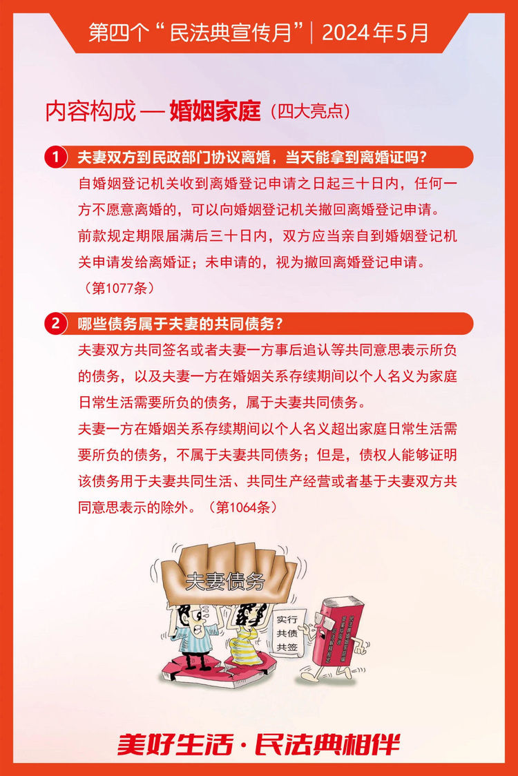 2024年5月是我國第四個(gè)“民法典宣傳月”。根據中宣部、司法部、全國普法辦要求,近日,省委依法治省辦、省委宣傳部、省司法廳印發(fā)活動(dòng)方案,決定以“美好生活·民法典相伴”為主題,以?xún)?yōu)化法治化營(yíng)商環(huán)境為重點(diǎn),在全省組織開(kāi)展“民法典宣傳月”活動(dòng)。