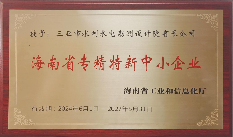 日前,《海南省工業(yè)和信息化廳關(guān)于2024年海南省專(zhuān)精特新中小企業(yè)認定和復核通過(guò)名單的通告》發(fā)布,三亞環(huán)農集團下屬三亞市水利水電勘測設計院有限公司被認定為“海南省專(zhuān)精特新中小企業(yè)”,這是設計院公司繼獲評國家高新技術(shù)企業(yè)之后,獲得的又一重要榮譽(yù)。