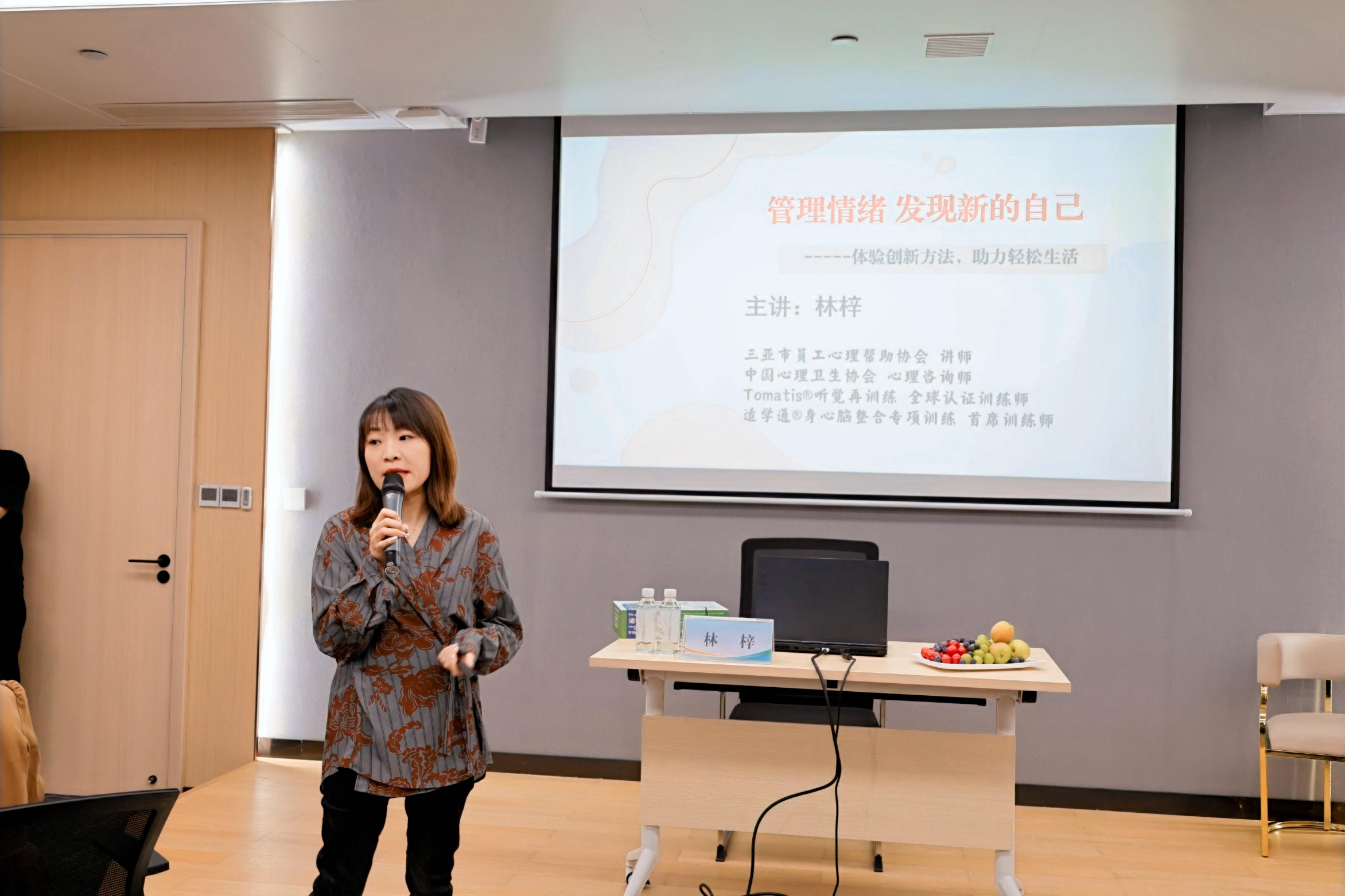 本次心理團輔活動(dòng)的主題為“管理情緒 發(fā)現心的自己——體驗創(chuàng )新方法,助力輕松生活”,由中國心理衛生協(xié)會(huì )心理咨詢(xún)師、三亞員工心理幫助協(xié)會(huì )林梓老師主講?;顒?dòng)中,林梓老師以深入淺出的方式,分析情緒的生成,引導大家正確看待消極情緒,做情緒的主人;帶領(lǐng)大家一起進(jìn)行呼吸練習、接拋沙包、“小海星”焦慮測試法等,有效舒緩焦慮。同時(shí),通過(guò)“默契拼圖”“快速猜圖”等團隊小游戲,讓大家在互動(dòng)中釋放壓力,探索快樂(lè )的心靈之旅。