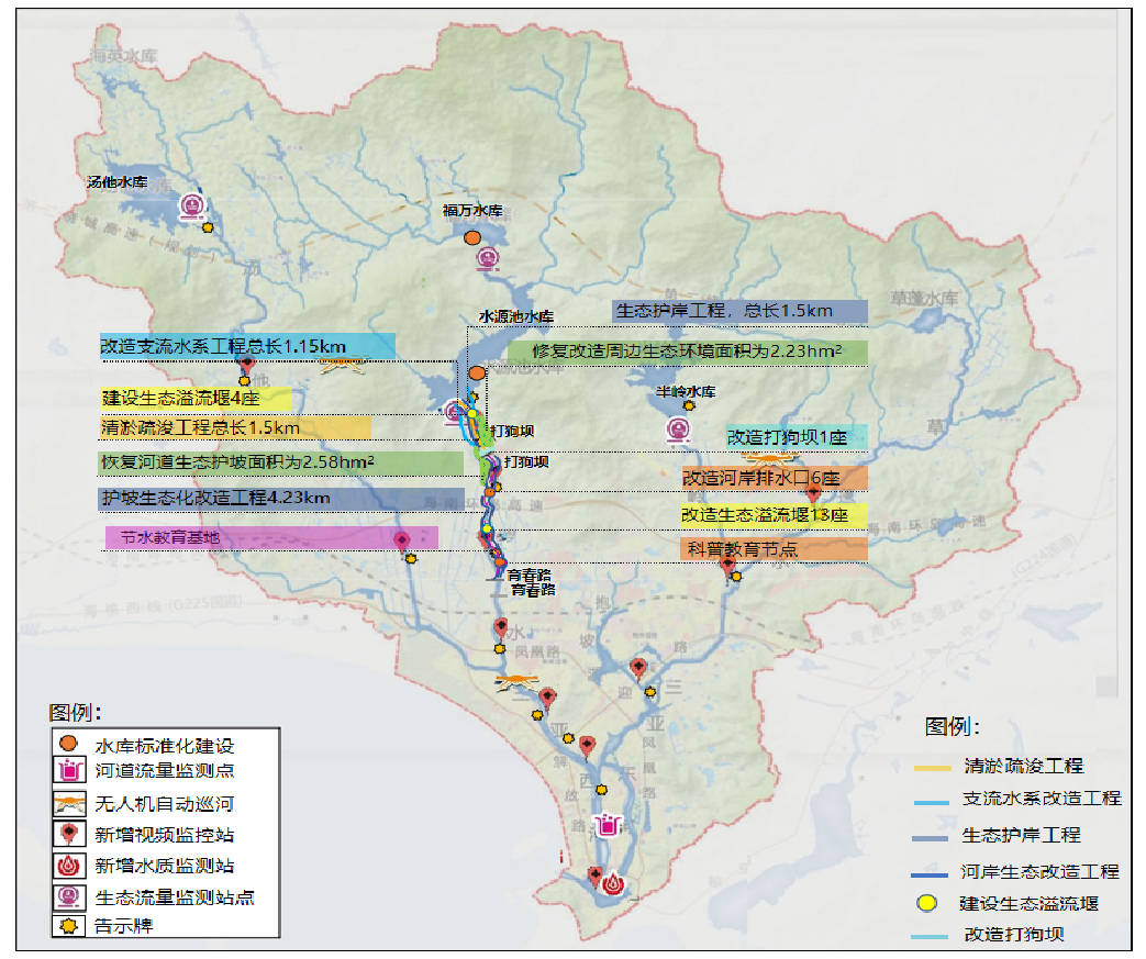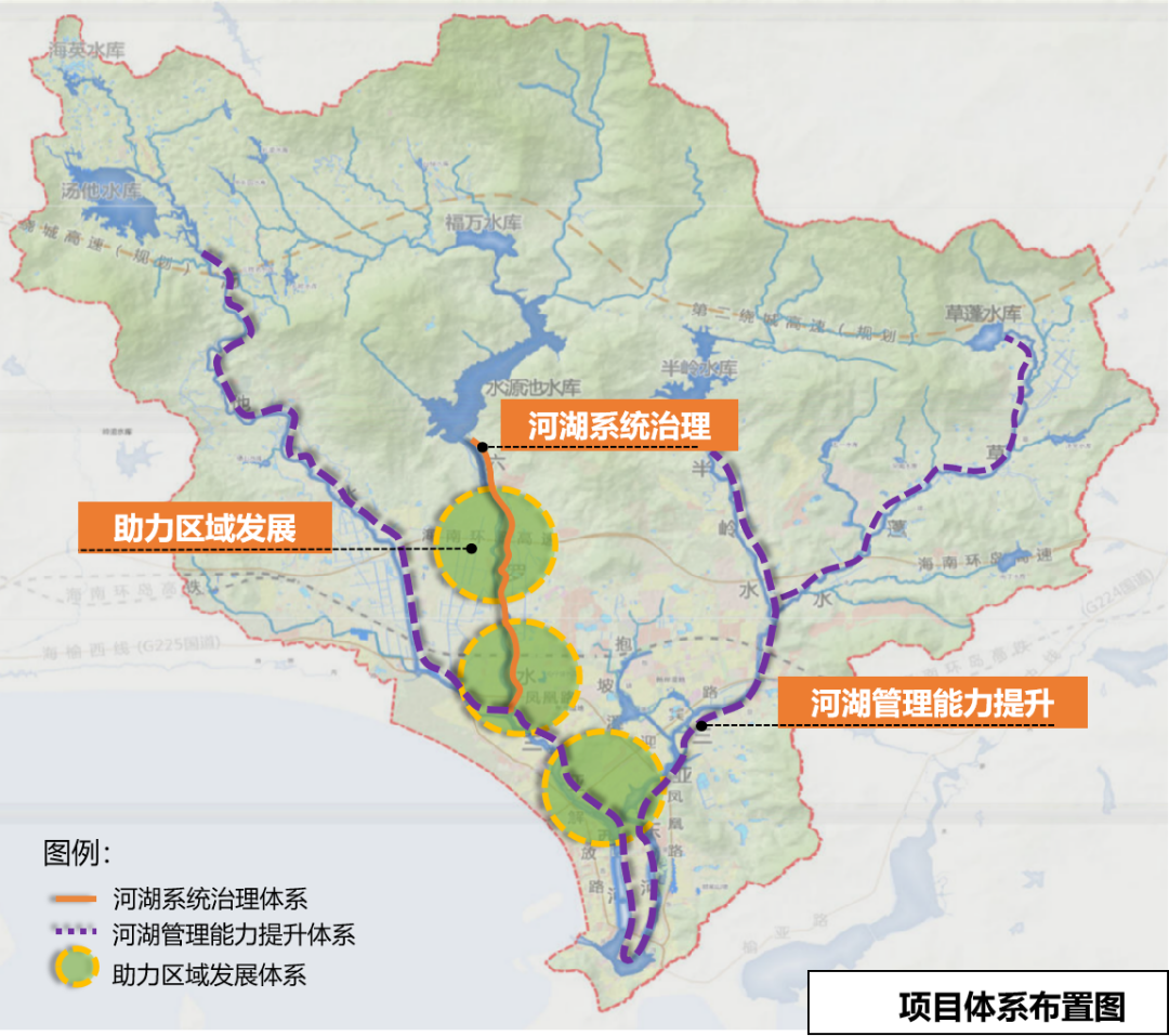三亞河幸福河湖建設項目(三亞河治理工程)位于三亞市天涯區水源池水庫下游河段,主要治理河段為水源池水庫溢洪道至育春路段,全長(cháng)6.5km,建設內容包括河湖水系連通、河湖管護提升、助力區域發(fā)展建設三大工程。將以流域的“水”為脈絡(luò ),融入流域山、海、河、林、田、城的重要集聚要素,把三亞河打造成“韌性、生態(tài)、智慧”的幸福河。