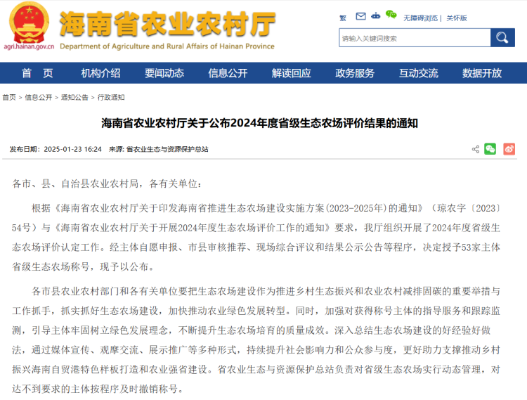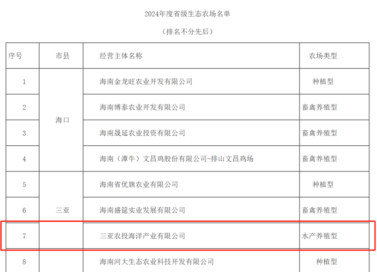 近日,海南省農業(yè)農村廳組織開(kāi)展省級生態(tài)農場(chǎng)評價(jià)認定工作,三亞環(huán)農集團旗下三亞農投海洋產(chǎn)業(yè)有限公司榮獲“2024年度海南省省級生態(tài)農場(chǎng)”稱(chēng)號,是全省首批獲評的海上生態(tài)農場(chǎng)。