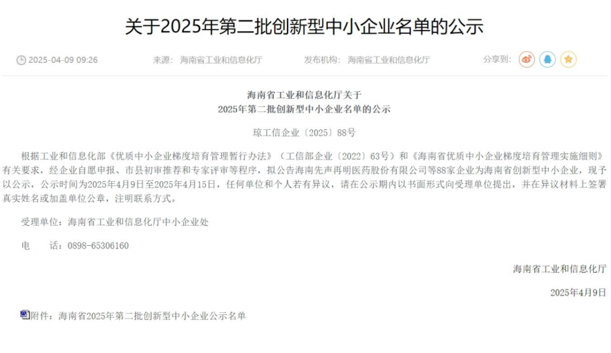 日前,海南省工業(yè)和信息化廳發(fā)布《關(guān)于2025年第二批創(chuàng )新型中小企業(yè)名單的公示》,三亞環(huán)農集團旗下三亞農投海洋產(chǎn)業(yè)有限公司成功上榜,標志著(zhù)三亞環(huán)農集團海洋科技創(chuàng )新能力邁上了新的臺階。