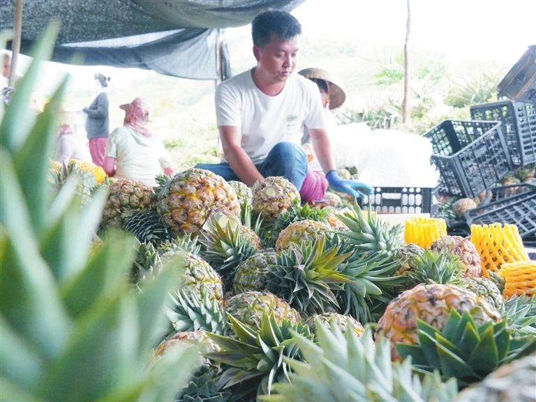 “這芒果鳳梨是新品種,從2024年1月開(kāi)始種植,目前口感、口碑俱佳,客戶(hù)認可度高。”收購商鄭榮邊裝貨邊聊市場(chǎng)反應。據介紹,三亞氣候高溫濕潤,相較海南北部產(chǎn)區,芒果鳳梨生長(cháng)及成熟時(shí)間能縮短1個(gè)月,搶占上市先機。未來(lái),基地將以“公司+農戶(hù)”模式推廣種植,為農戶(hù)提供種苗、技術(shù)支持和就業(yè)崗位,助力增收。