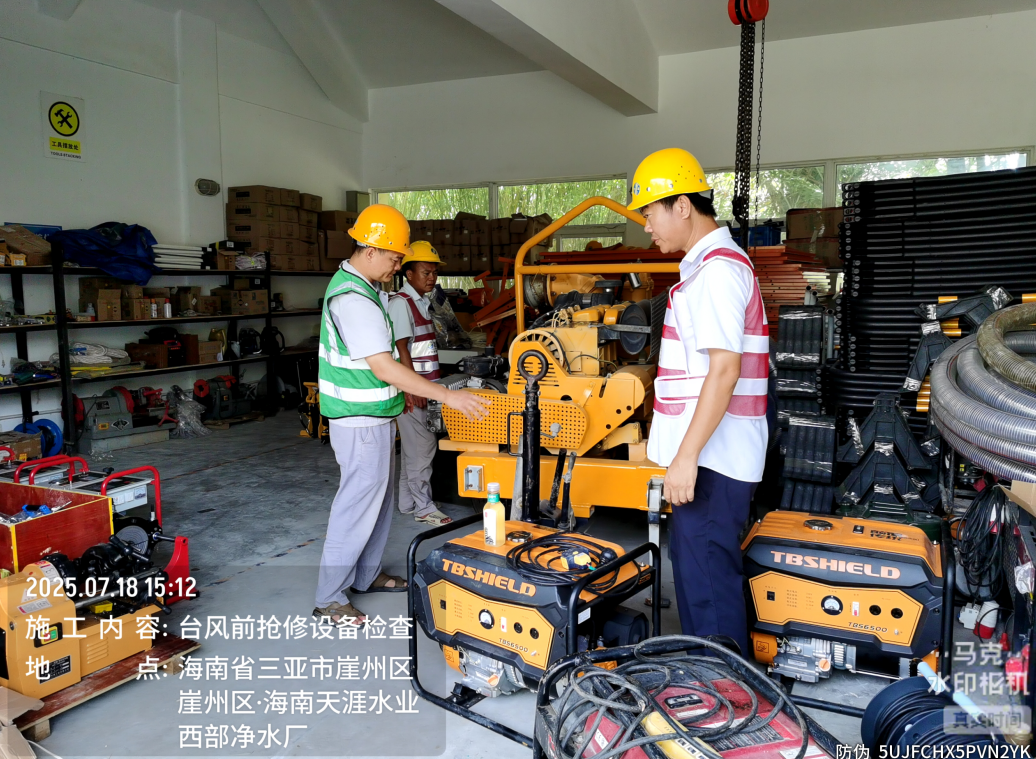 完成廠(chǎng)區搶修車(chē)、潛水泵等應急設備檢查與試運行。各廠(chǎng)共16臺發(fā)電機已進(jìn)行試運行,發(fā)電機油料儲備17935L。同時(shí)儲備抽水泵36臺、雨衣209件、手電筒109個(gè)、沙袋1129個(gè)及搶修車(chē)2輛。