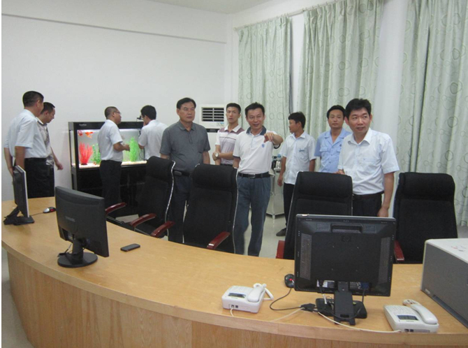 座談會結(jié)束的后,公司總經(jīng)理袁文革、黨委書記白應(yīng)周陪同調(diào)研組前往西部供水考察調(diào)研。聯(lián)絡(luò)指導(dǎo)組一行首先現(xiàn)場參觀了凈水廠中控室、水質(zhì)檢測中心、黨員活動中心,然后沿著凈水廠生產(chǎn)流程參觀了配水井、平流沉淀池、V型濾池、清水池及送水泵房等水處理工藝設(shè)施。工作人員就制水工藝流程的每一個環(huán)節(jié)向聯(lián)絡(luò)指導(dǎo)組進行認(rèn)真細致的講解。西部凈水廠優(yōu)美的環(huán)境,先進的制水工藝,現(xiàn)代化的中控室、水質(zhì)檢測中心等給聯(lián)絡(luò)組一行留下了深刻的印象。