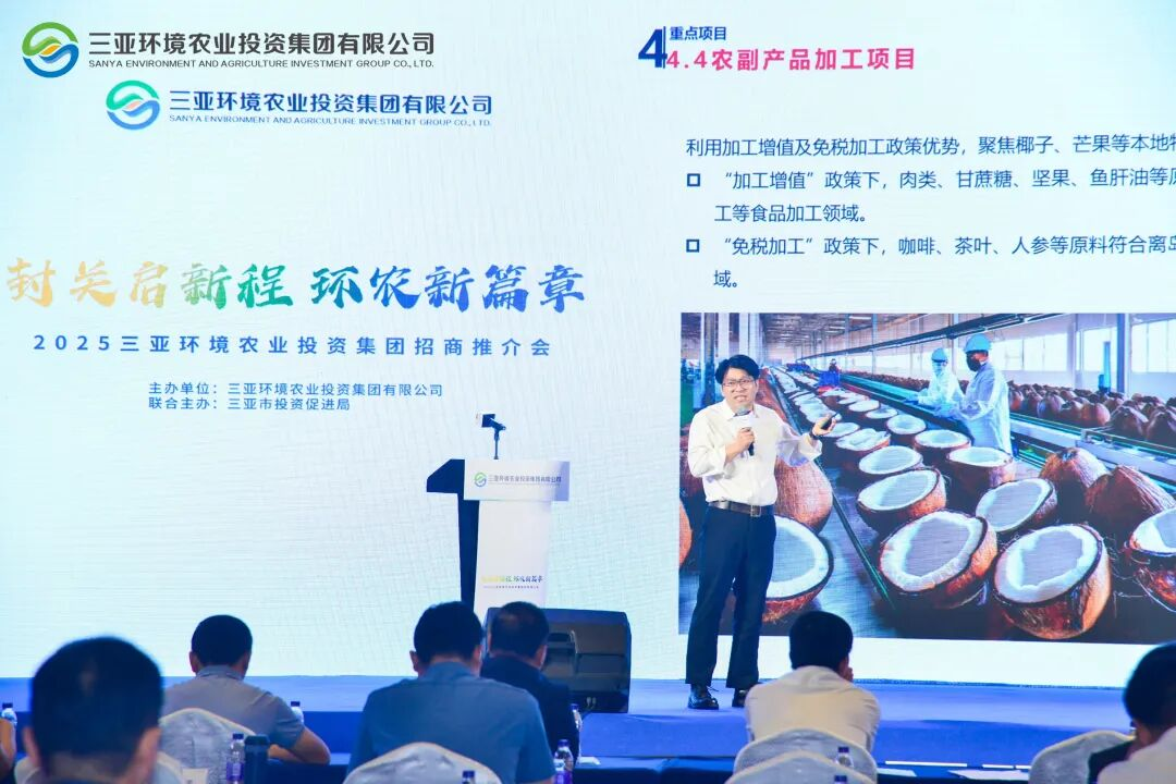 12月23日,由三亞環(huán)農(nóng)集團(tuán)、三亞市投資促進(jìn)局聯(lián)合主辦的“封關(guān)啟新程·環(huán)農(nóng)新篇章”2025招商推介會(huì)在三亞灣紅樹(shù)林國(guó)際會(huì)展中心舉行。推介會(huì)圍繞環(huán)農(nóng)集團(tuán)六大業(yè)務(wù)板塊,集中推介了11個(gè)招商項(xiàng)目,投資總規(guī)模達(dá)28.44億元。來(lái)自各相關(guān)部門(mén)和60多家島內(nèi)外企業(yè)、合作伙伴、金融機(jī)構(gòu)的代表同三亞環(huán)農(nóng)集團(tuán)共話農(nóng)商與環(huán)境板塊新成果、共探自貿(mào)港新政策、共尋合作新機(jī)遇。